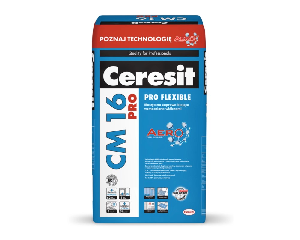 Купить Ceresit CM 16 PRO - клей для плитки высокоэластичный (20 кг). Церезит СМ 16 PRO купить в Минске: цена в розницу и оптом, характеристики, описание, фото — «penopleks.by»