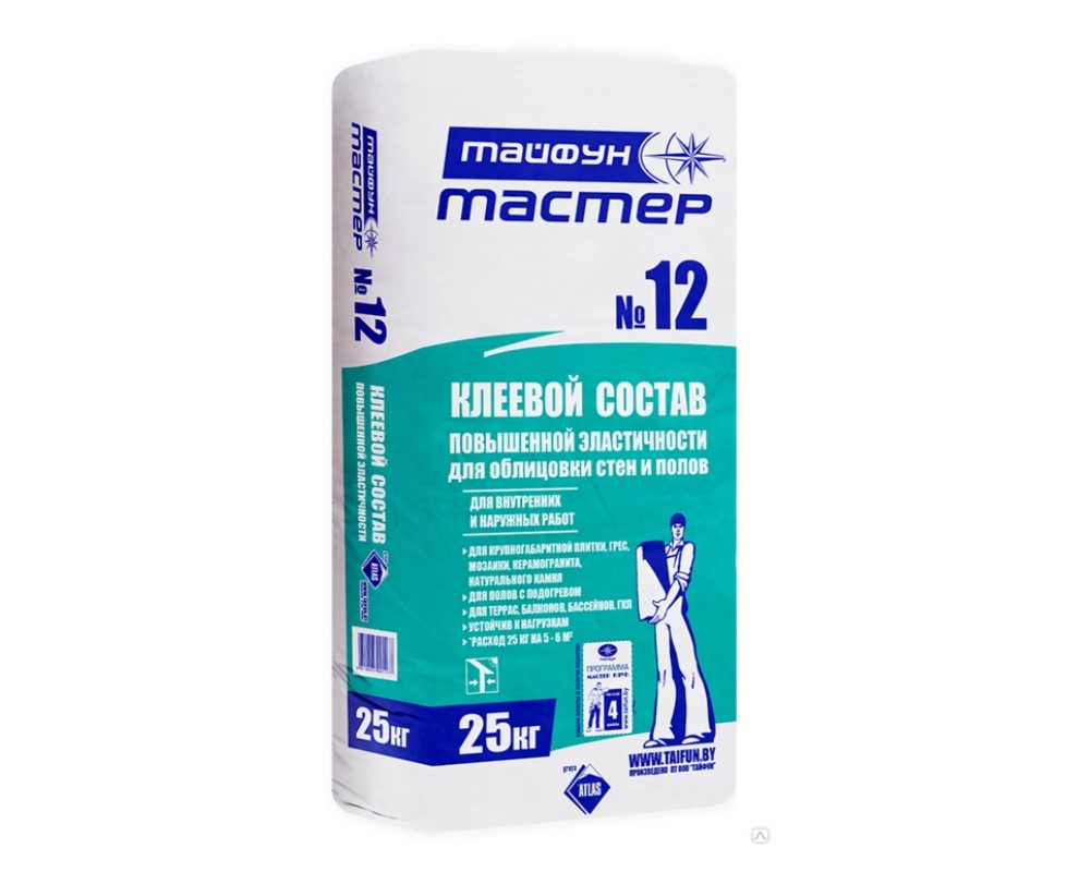Заказывайте клей для плитки повышенной эластичности «Тайфун Мастер» №12 (25 кг) в интернет-магазине Izolmarket.by. Продажа в розницу и оптом. Большой ассортимент продукции «Тайфун Мастер» по выгодным ценам с поставкой напрямую от производителя!