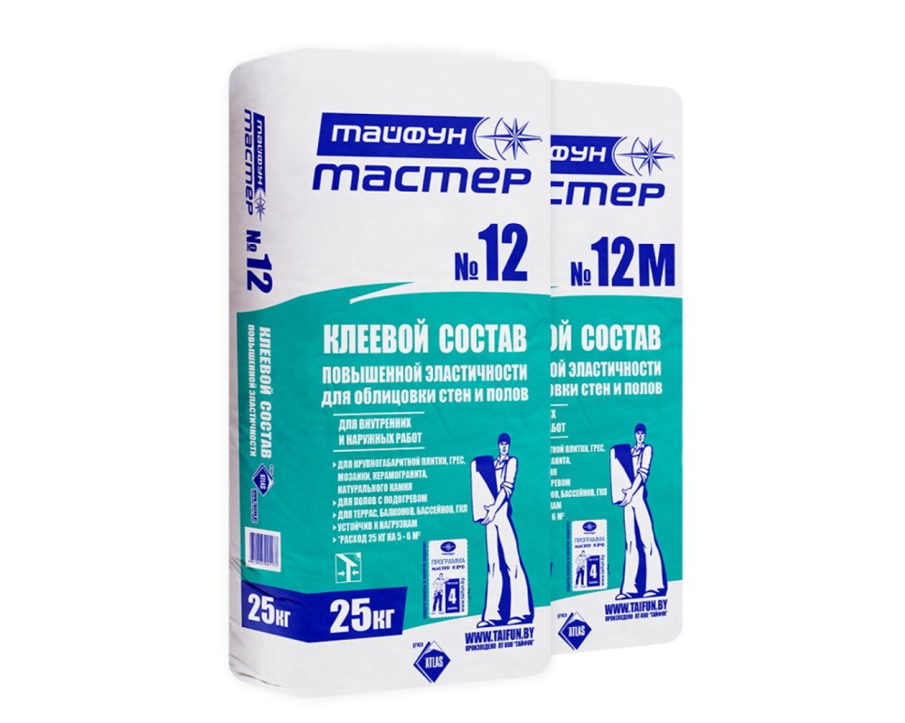 Заказывайте клей для плитки повышенной эластичности «Тайфун Мастер» №12М (25 кг) в интернет-магазине Izolmarket.by. Продажа в розницу и оптом. Большой ассортимент продукции «Тайфун Мастер» по выгодным ценам с поставкой напрямую от производителя!