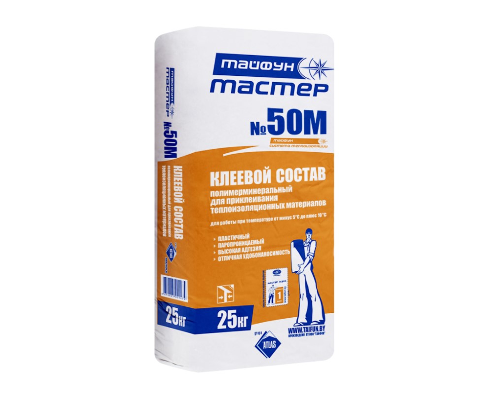 Заказывайте клей для теплоизоляции Тайфун Мастер №50М (25 кг) в интернет-магазине Izolmarket.by. Продажа в розницу и оптом. Большой ассортимент продукции «Тайфун Мастер» по выгодным ценам с поставкой напрямую от производителя!