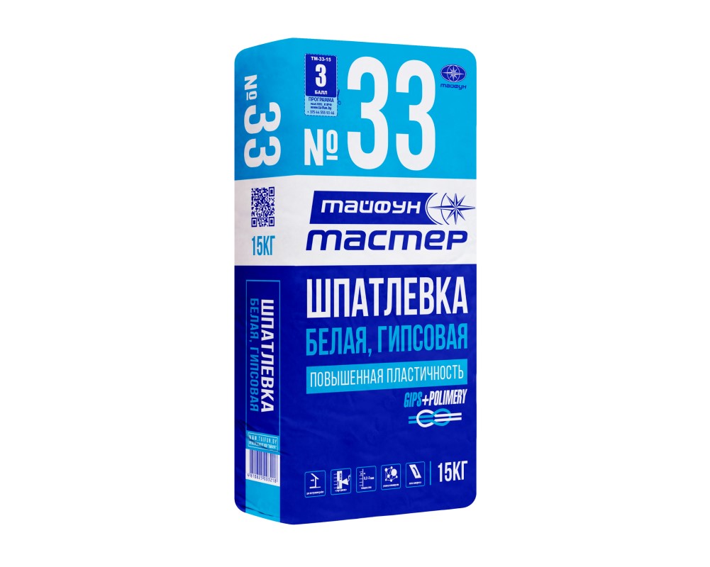 Тайфун Мастер №33 шпатлевка гипсовая (15 кг) купить в Минске с доставкой. Шпатлевка Тайфун Мастер №33 по низкой цене: характеристики, описание, фото — «penopleks.by»