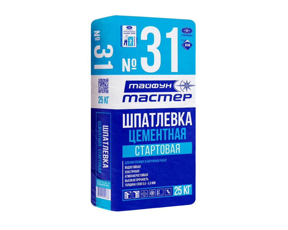 Шпатлевка цементная серая Тайфун Мастер №31 (25 кг): цена, описание, фото. Купить в розницу и оптом, большой выбор смесей «Тайфун Мастер», низкие цены