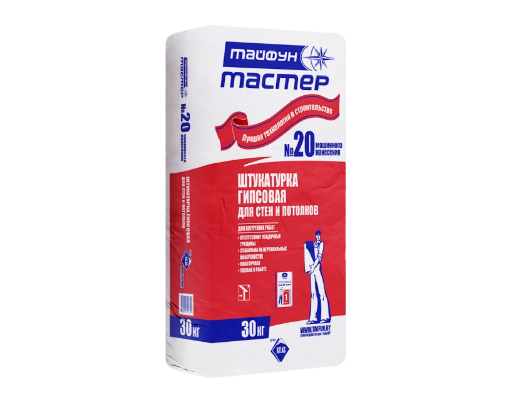 Заказывайте гипсовую штукатурку машинного нанесения Тайфун Мастер №20 (30 кг) в интернет-магазине Izolmarket.by. Продажа в розницу и оптом. Большой ассортимент продукции «Тайфун Мастер» по выгодным ценам с поставкой напрямую от производителя!