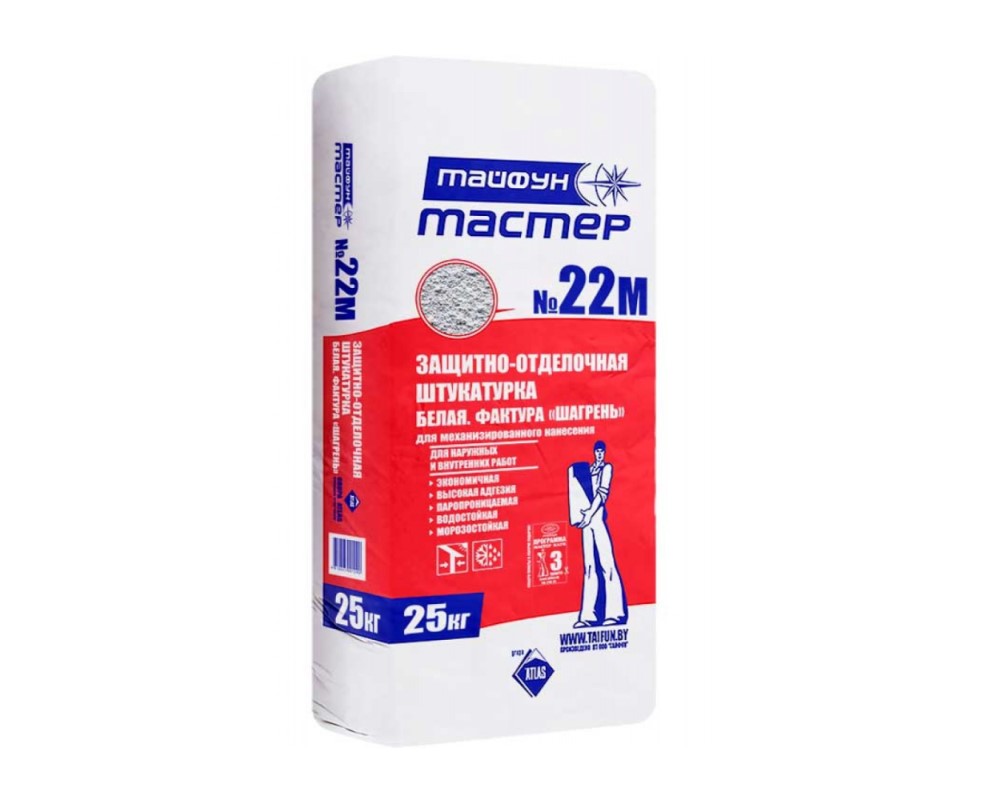 Штукатурка Тайфун Мастер №22М "Шагрень" белая (25 кг) купить в Минске с доставкой. Штукатурка Тайфун Мастер №22М по низкой цене: характеристики, описание, фото — «penopleks.by»